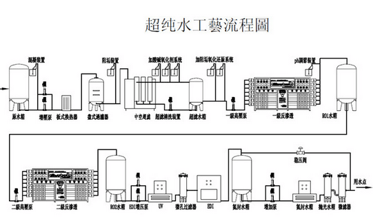 多介質過濾+ +活性炭過濾+一級RO+軟化+二級RO+EDI